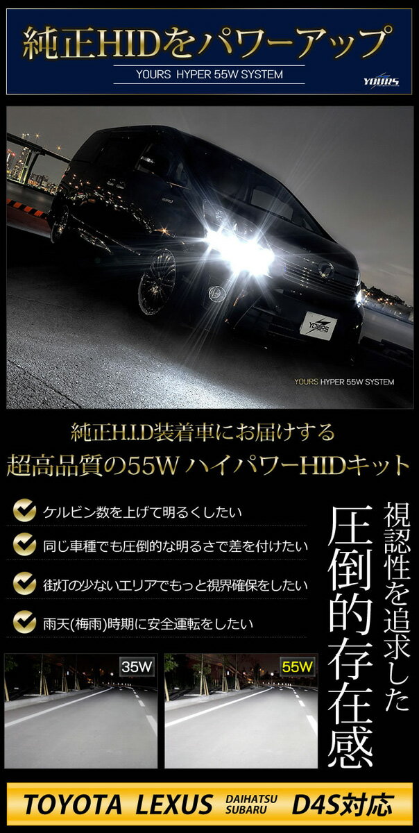 純正HID ハイワッテージキット【トヨタ 純正HIDを55W化】 D4S 55Wハイワッテージ仕様HIDキット【純正HIDを55W化するためのマストアイテム!】【55W専用設計】