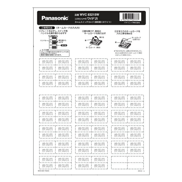パナソニック ネームスイッチカード 換気扇 ホワイト WVC83215W