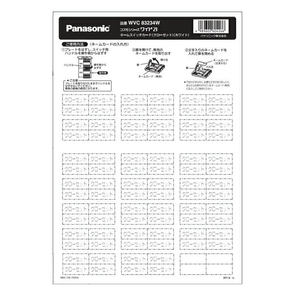 WVC83201W パナソニック ネームスイッチカード (玄関) ホワイト
