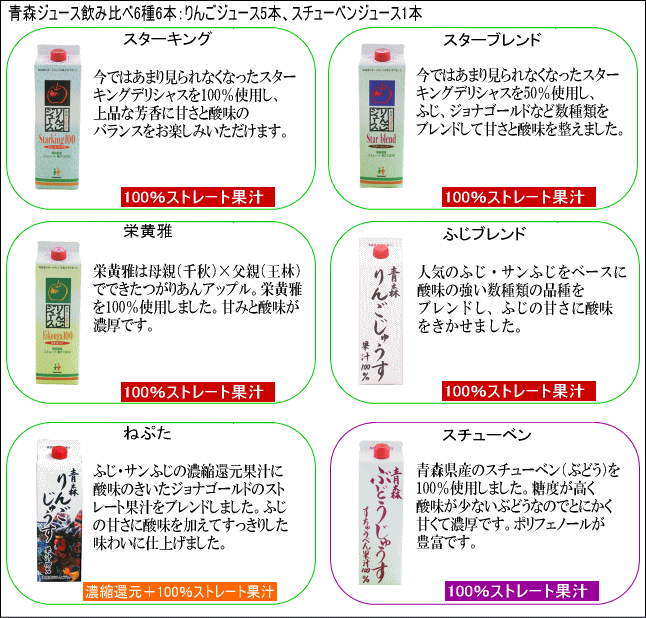 【2箱で送料無料】青森ジュース飲み比べ6本セット1000ml×6本りんごジュース、スチューベンジューススターキング、スターブレンド、栄黄雅(えいこうが)、ふじブレンド、ねぷた、スチューベン【RCP】