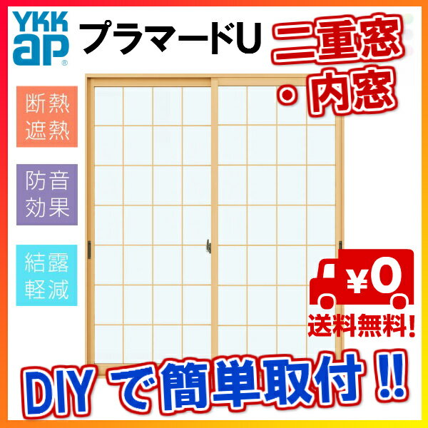 二重窓 内窓 YKK プラマードU 2枚建 引き違い窓 和室用 Low-E複層ガラス (断熱タイプ) 荒間格子 すり板4mm+A11+3mm W幅1001〜1500 H高さ1401〜1800mm