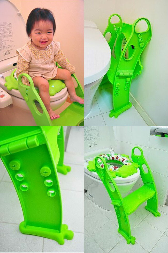 トイレが楽しくなる!かわいいかえるの形をしたふわふわクッションのトイレトレーナーにトイレを嫌がるお子様もいちころです。