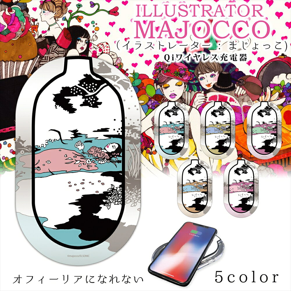 majocco スマホ 充電器 置くだけ プリント ワイヤレス充電器 オフィーリアになれない iPhoneXS iPhoneXR Xperia Galaxy キャラクター 充電 置くだけ充電