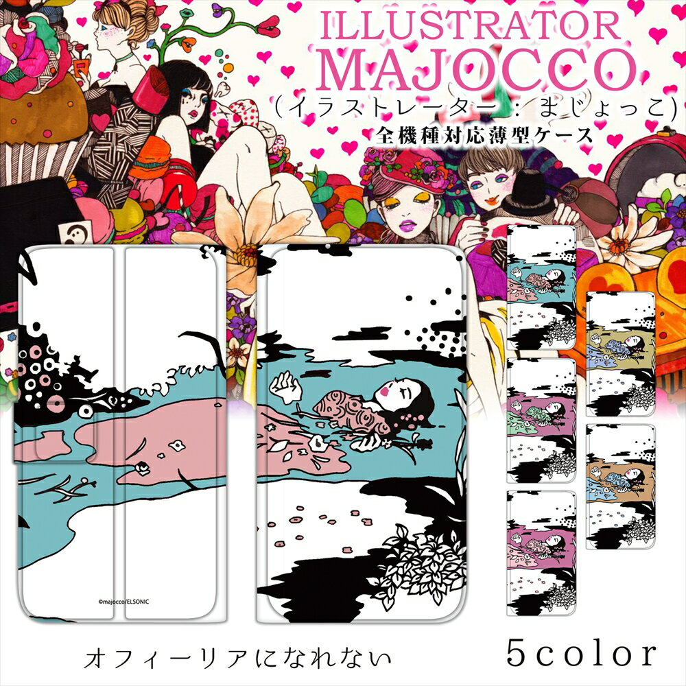 スマホケース 手帳型 全機種対応 majocco 薄型プリント手帳 オフィーリアになれない iPhoneXS Max iPhoneXR Xperia xz2 Galaxy s9 AQUOS R2 huawei ZenFone Max Plus らくらくスマホ スマホカバー 携帯 ケース カバー