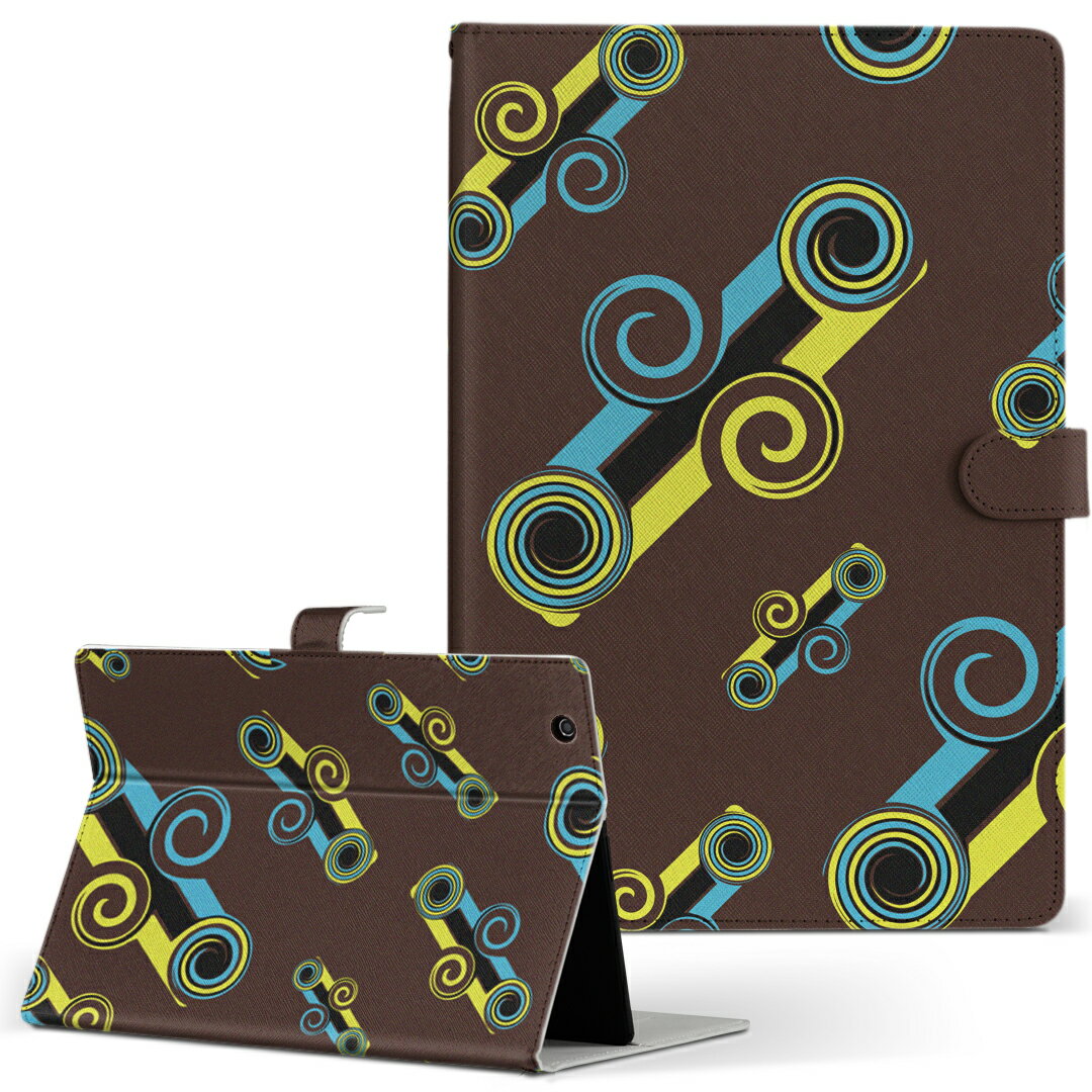 lenovo IdeaTab Tablet K1 イデアタブ tabletk1 Mサイズ 手帳型 タブレットケース カバー 全機種対応有り レザー フリップ ダイアリー 二つ折り 革 うずまき 茶色 ブラウン 模様 クール 008460